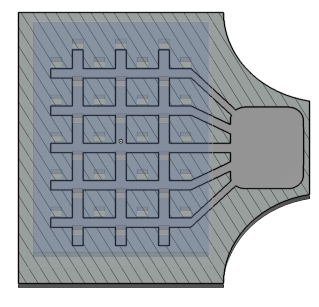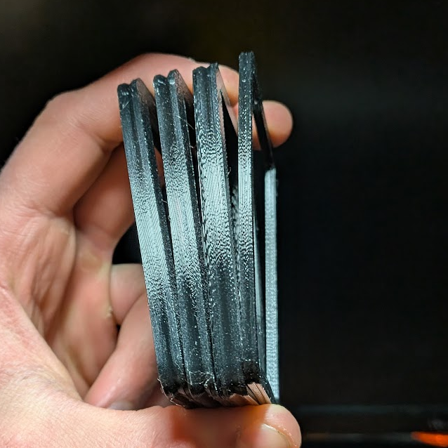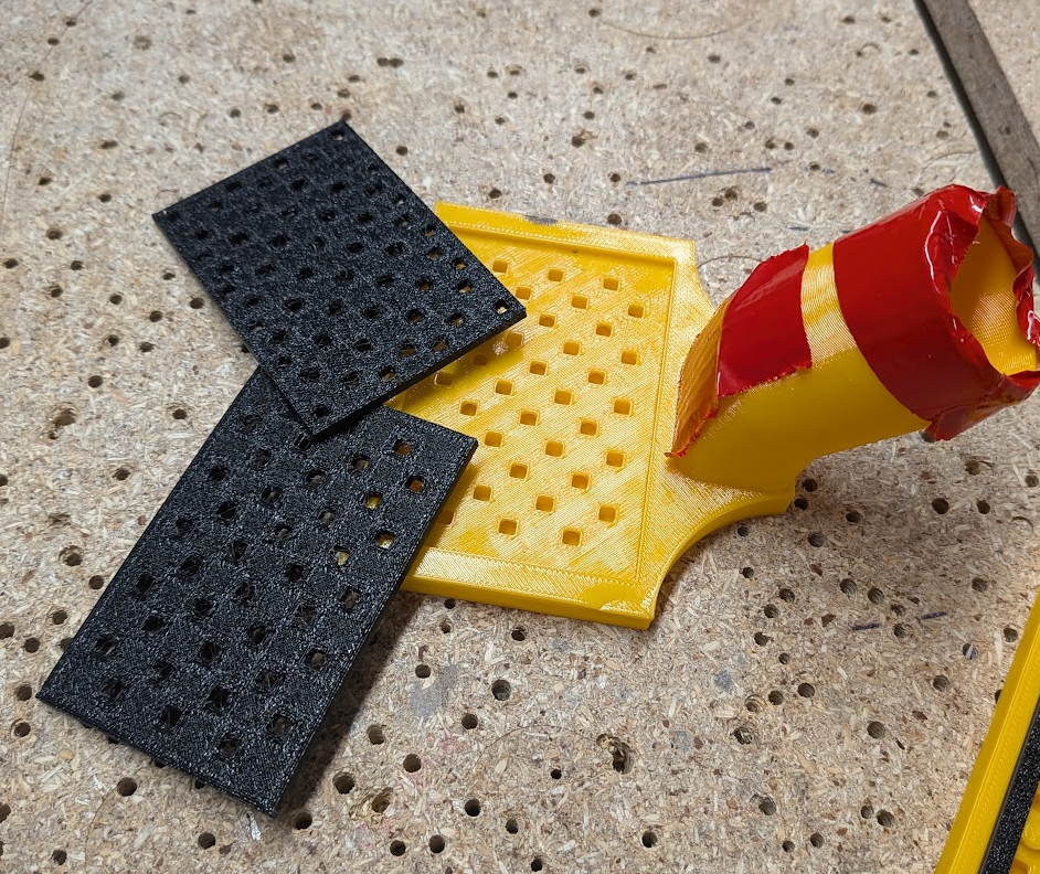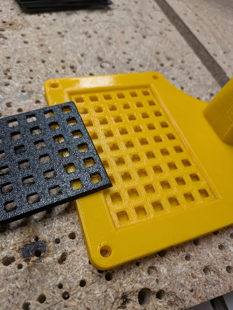 My next iteration had a full TPU backing and many holes for the vacuum to suck air from. Each was connected to the vacuum nozzle via internal channels I included in the model, which I also included on a TPU pad meant to spread out the vacuum suction to the edges and corners. I printed another pad solid to see if that would help prevent the card from bending, which it didn’t improve compared to the the non-solid pad.