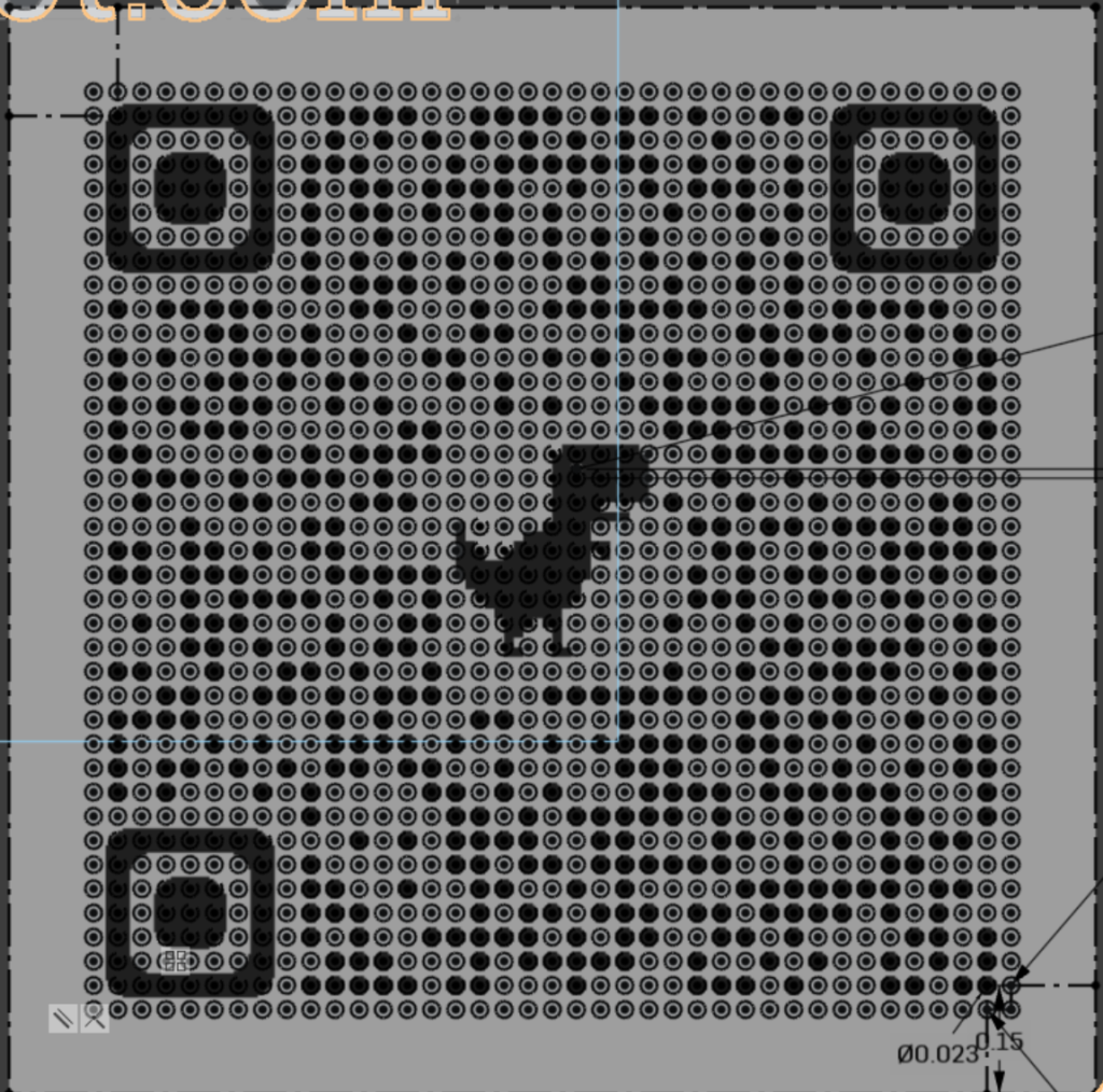 To CNC etch a qr code, I first had to have a STEP model of my card with the curves for one on it. I tried using PNG to DXF and DWG converters online to import usable vectors, but they wouldn’t pick up on the small dots that google generated QR codes use and weren’t very accurate with other features of the code. So, I sucked it up and made the dots and other features manually in Onshape. The easiest way I could come up with was to import the PNG, then aligned a 39 by 39 pattern of construction-circles with it that would act as pixels. Construction geometry isn’t be extruded and consequently won’t be etched, creating the black pixels while the white pixels would be made by extruded circles. Going through the whole grid, I changed all the circles that I could see to be extrude-able (which were black on white, while the black and black ones were construction). When etched, the QR code forms on the black-coated aluminum by each of these circles extruded into the model of the card being used as a toolpath to scrape off the coating; this is also how the characters are formed.
