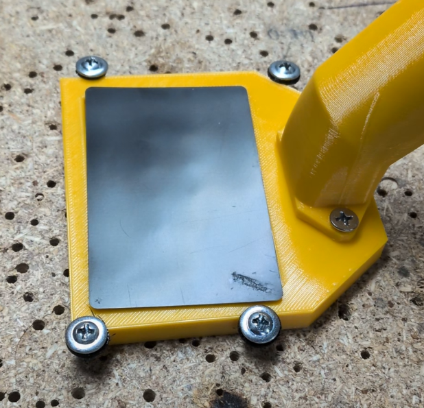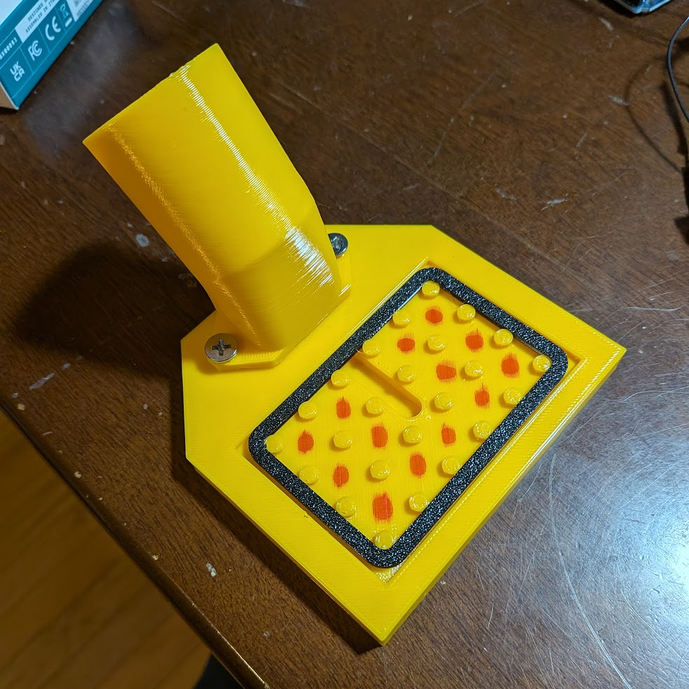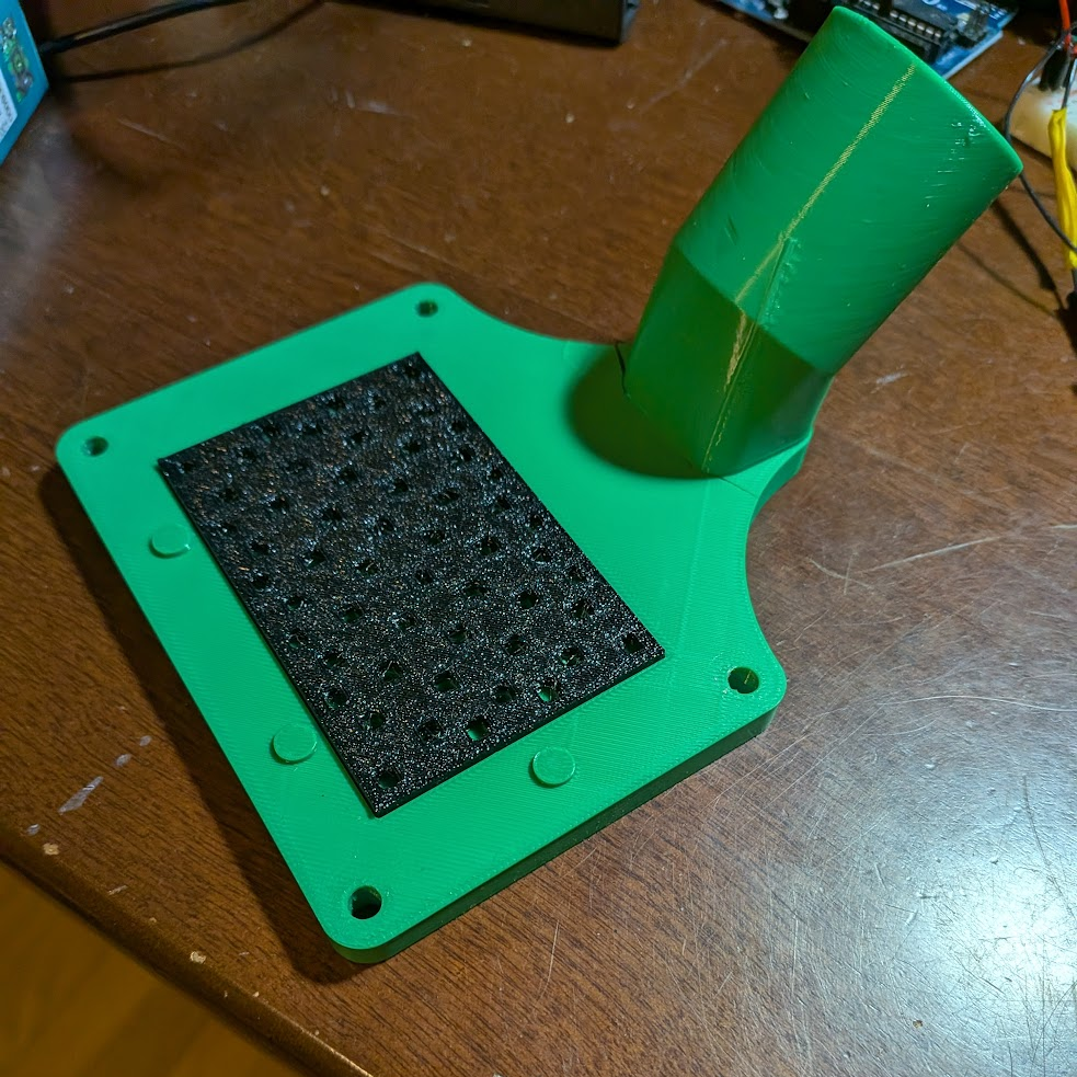 The final vacuum holder I made was wide enough that I could have suction at the very corners of the card and also had much more open internal geometry to hopefully increase suction. In practice it worked pretty well, only shifting a small amount. To combat this, I added locator pegs on the TPU pad all the way around the card that stopped it from moving.